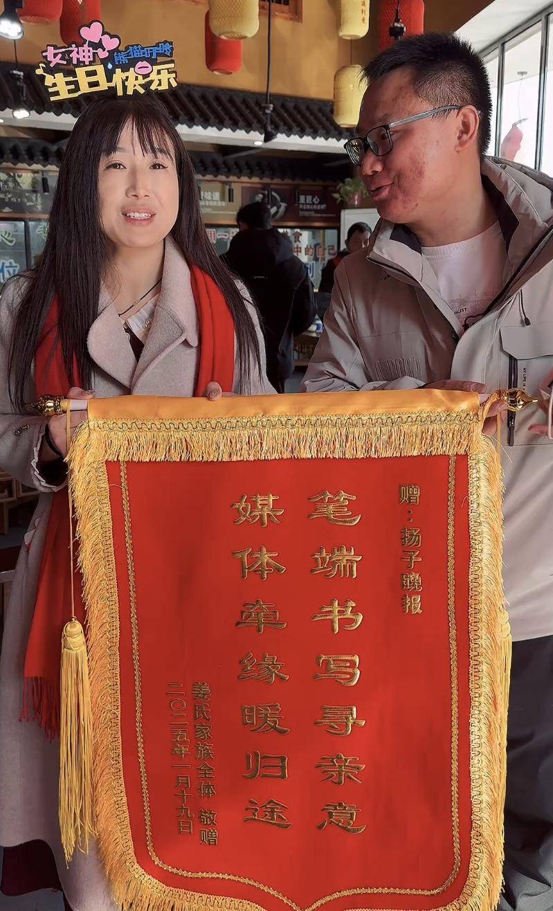 “笔端书写寻亲意,媒体牵缘暖归途。”团聚现场,佳佳向扬子晚报送上锦旗表示感谢。她说:“扬子晚报帮我刊登了第一篇新闻报道,让我的家人看到了,我才能这么快回家,衷心地感谢扬子晚报。”